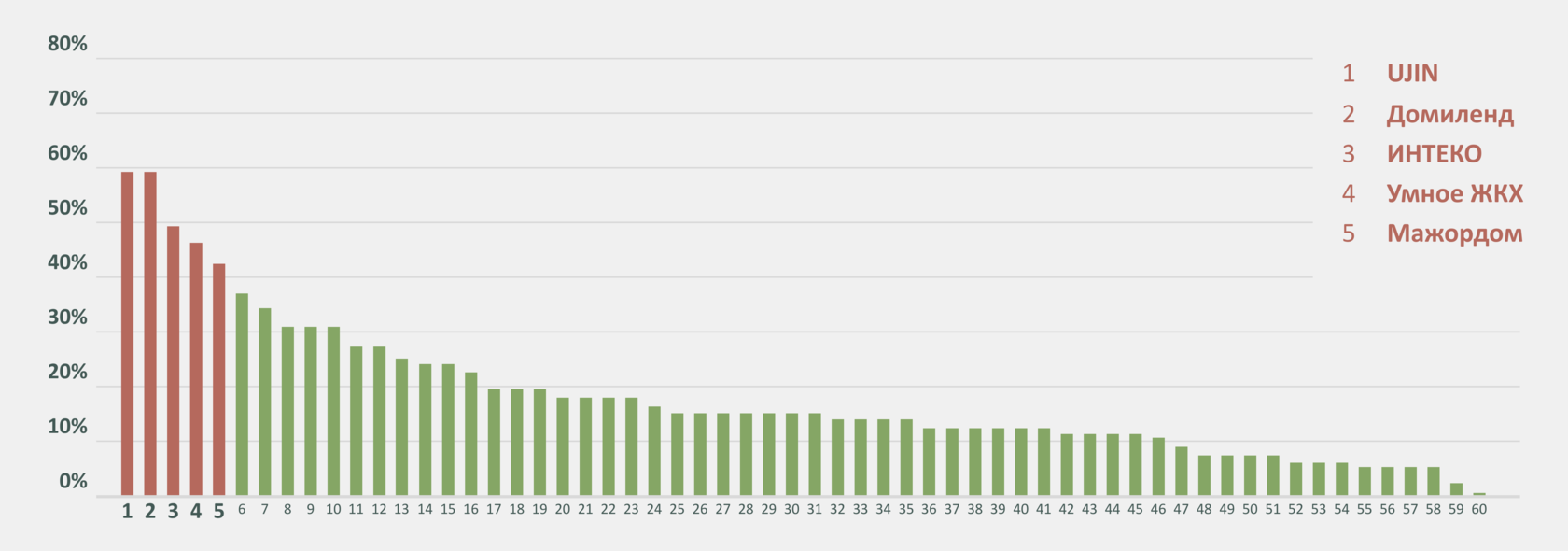 Только 5 из 60 мобильных приложений покрывают от 40 до 60 процентов эталонного функционала.